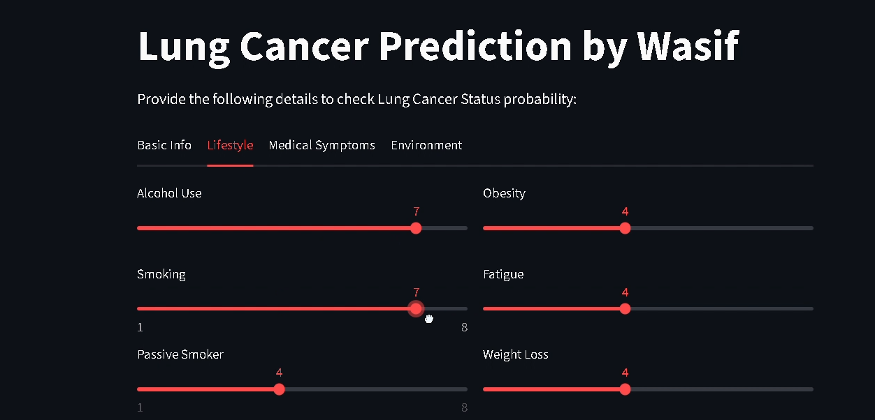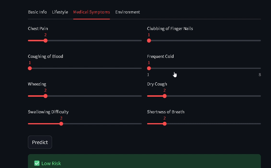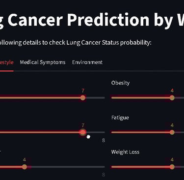 A machine learning web application that predicts the likelihood of lung cancer based on user-reported symptoms through an interactive Streamlit interface.